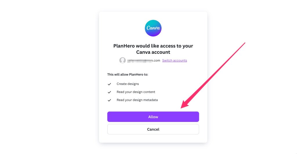 2. If you are already logged in to your Canva account, click the Allow button. Then skip to step #6. below.