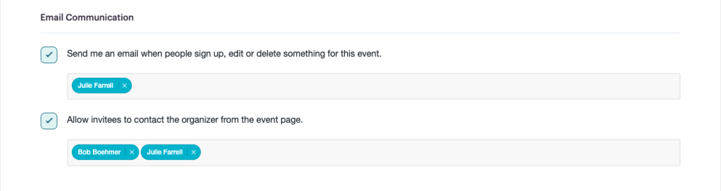 You can also set which co-organizers will receive notifications and/or contact messages from the Event: