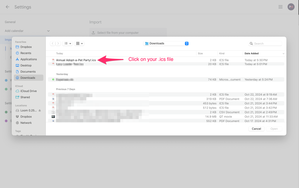 - Click on Select file from the computer (Note: You can also switch the calendar to which you wish to sync here)