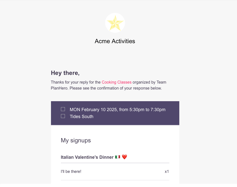 Like our Signup Tool, our Club Tool sends automatic event reminders to your participants. This saves organizers a ton of time, and helps ensure participants remember their club commitments.